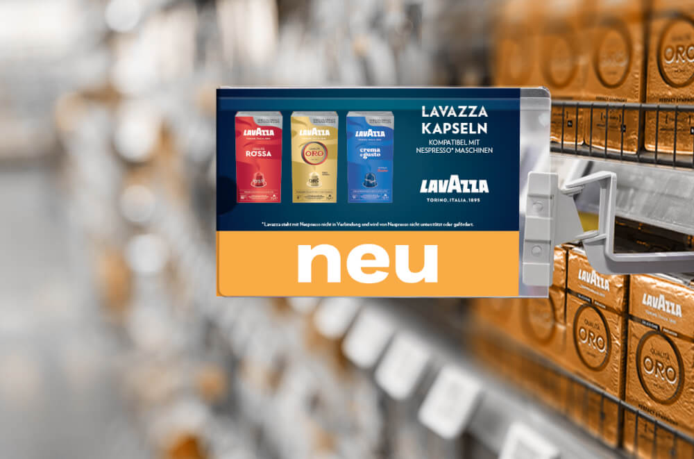 Platzierung direkt bei Ihrem Produkt am Regal in 325 Coop-Verkaufsstellen ab B-Format und in 525 Coop-Verkaufsstellen ab A-Format in der Gesamtschweiz (mit und ohne Coop City Warenhäuser). Geeignet für Neuheiten und Sortimentsrabatte.