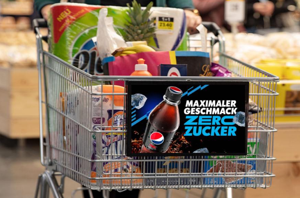 Begleitet die Konsument:innen während des gesamten Einkaufsprozess in der Verkaufsstelle - 170'000 Pushposter an 85'000 Einkaufswagen. Starke Aufmerksamkeit für Ihre Marke mit Innen- und Aussenansicht.