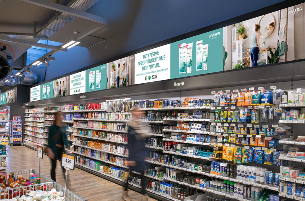 Mit Ihrer Markenaussage Konsument:innen an das Regal führen. Zwei Ausstrahlungen pro Stunde in bis zu 897 Filialen (Abhängig von Listung) in der Gesamtschweiz.